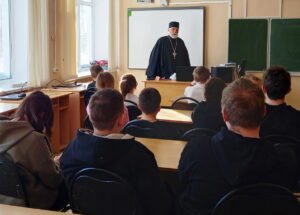 16 февраля благочинный Весьегонского округа, настоятель Иоанно-Предтеченской церкви г. Весьегонска протоиерей Анатолий Симора встретился с учениками 9 класса Весьегонской средней общеобразовательной школы. Он провел с учениками беседу о Масленице – неделе плавного перехода и духовной подготовки к Великому посту, поведал о Великом посте, который начинается с покаяния – оценки своей жизни и изменения ума и сердца. Он объяснил, что цель поста – это, прежде всего, освобождение человека от власти греха и разрушительных страстей и призвал учащихся к добродетельной жизни.
