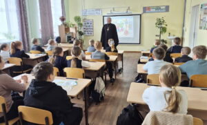 12 марта благочинный Весьегонского округа протоиерей Анатолий Симора провел с учениками третьего класса Весьегонской средней общеобразовательной школы беседу на тему «Пасха! Семейные традиции!». Он рассказал о духовном и спасительном значении Великого поста, о смысле самого главного праздника православных – Светлого Христова Воскресения, олицетворяющего торжество жизни, добра и любви, поведал о семейной доброй традиции печь куличи, красить яйца…