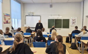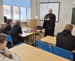 12 марта член Союза писателей России, благочинный Весьегонского округа протоиерей Анатолий Симора провел с учениками девятого класса Весьегонской средней общеобразовательной школы встречу, посвященную Дню православной книги. Отец Анатолий напомнил ученикам историю праздника, приуроченного к изданию первой на Руси печатной книги «Апостол». Он отметил, что православные книги – это, в первую очередь, Священное Писание, труды св. отцов и богословская литература, а также художественная литература, и содержащая подлинно духовные ценности, призывающая к добродетельной жизни, идеалам любви и добра. Для наглядности протоиерей А.Симора показал ребятам Священное Писание Ветхого и Нового Заветов на русском языке, Святое Евангелие на Церковно-Славянском языке, Апостол и Требник.
