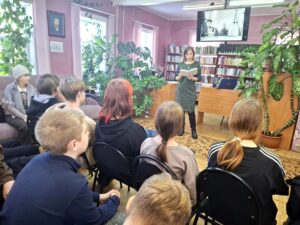11 марта в Весьегонской центральной библиотеке помощник благочинного по религиозному образованию, библиограф вышеупомянутого учреждения Елена Евгеньевна Щепетова встретилась с учениками седьмого класса Весьегонской средней общеобразовательной школы. Она поведала ребятам об истории Краснохолмского Николаевского Антониева мужского монастыря, которому в этом году исполняется 565 лет. Е.Е. Щепетова остановилась на наиболее важных вехах жизни святой обители, зачитала интересные фрагменты из книг, посвященных монастырю.